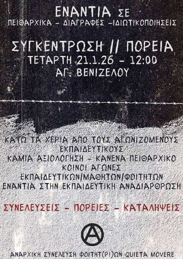 Συγκέντρωση αλληλεγγύης στα συλληφθέντα άτομα της κατάληψης πρυτανείας ΕΚΠΑ | Πρωτοβουλία Αναρχικών Φοιτητών/τριών Αθήνας