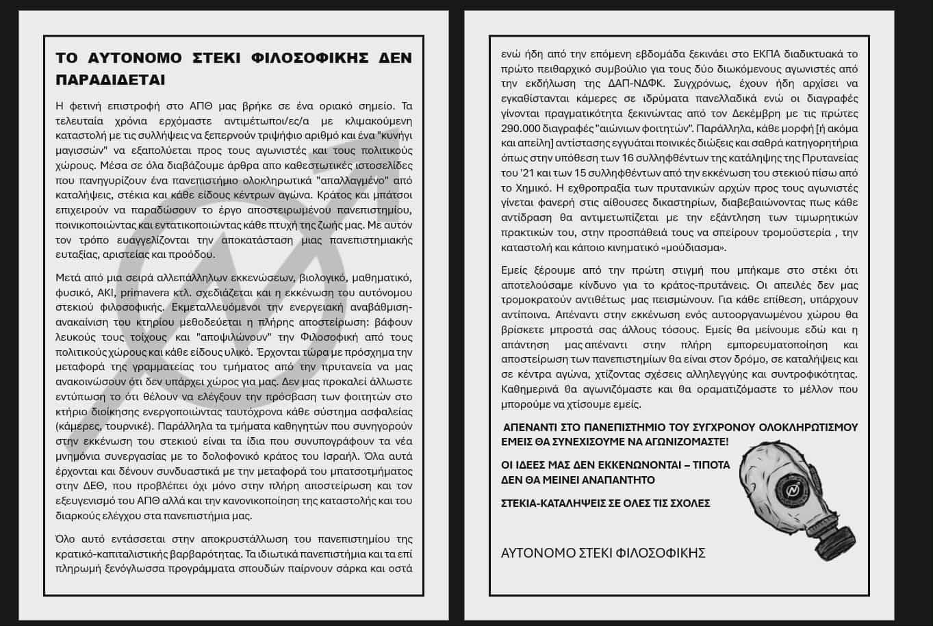 Αλληλεγγύη στον αναρχικό φοιτητή Ζ.Μ. που διώκεται από την πρυτανική αρχή του ΕΜΠ μετά από παρέμβαση ενάντια στη γενοκτονία του παλαιστινιακού λαού