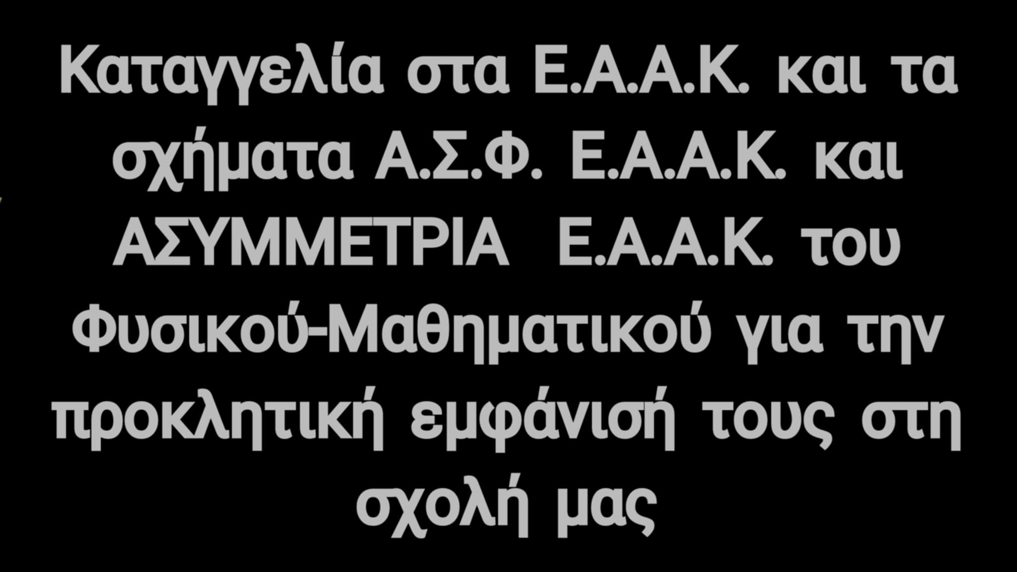Καταγγελία στα Ε.Α.Α.Κ. και τα σχήματα Α.Σ.Φ. Ε.Α.Α.Κ. και ΑΣΥΜΜΕΤΡΊΑ Ε.Α.Α.Κ. του Φυσικού-Μαθηματικού για την προκλητική εμφάνισή τους στη σχολή μας.