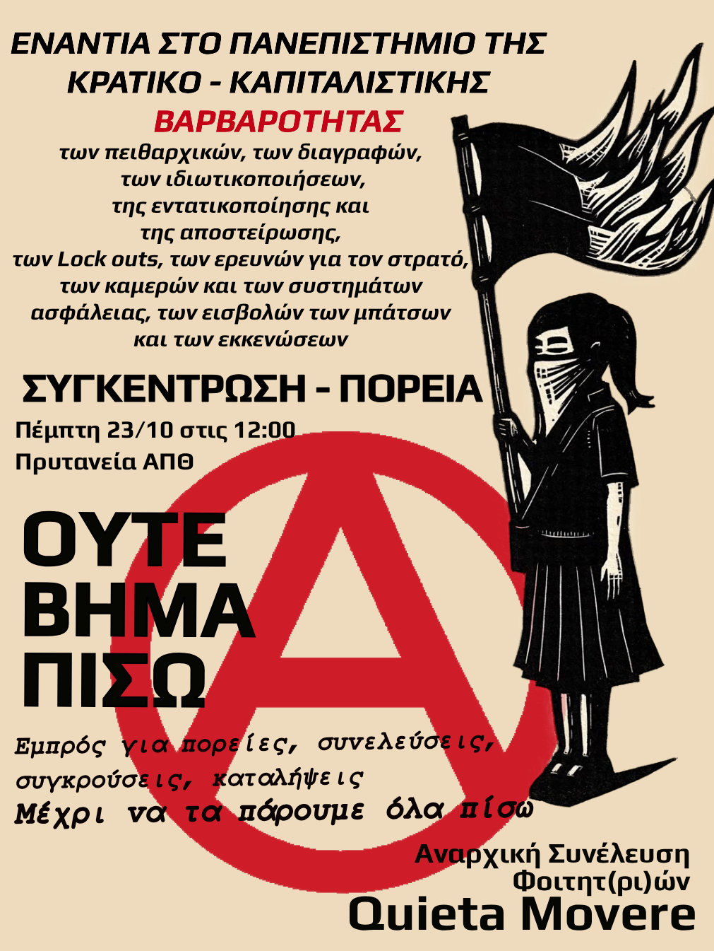 Κάλεσμα στην πορεία-συγκέντρωση ενάντια στην εκπαιδευτική αναδιάρθρωση και το πανεπιστήμιο του σύγχρονου ολοκληρωτισμού την Πέμπτη 23/10 στις 12.00 στην πρυτανεία ΑΠΘ
